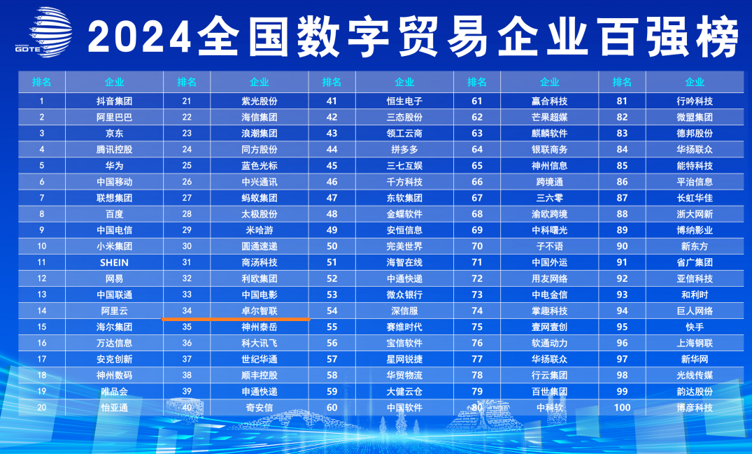 9月25日,,,第三届全球数字贸易博览会在杭州开幕,,赛迪顾问股份有限公司在会上发布了《2024中国数字贸易企业竞争力研究》及2024全国数字贸易企业百强榜,,,,尊龙时凯同阿里、、京东、、、腾讯等知名企业一同入选榜单,,,位列第34位。。