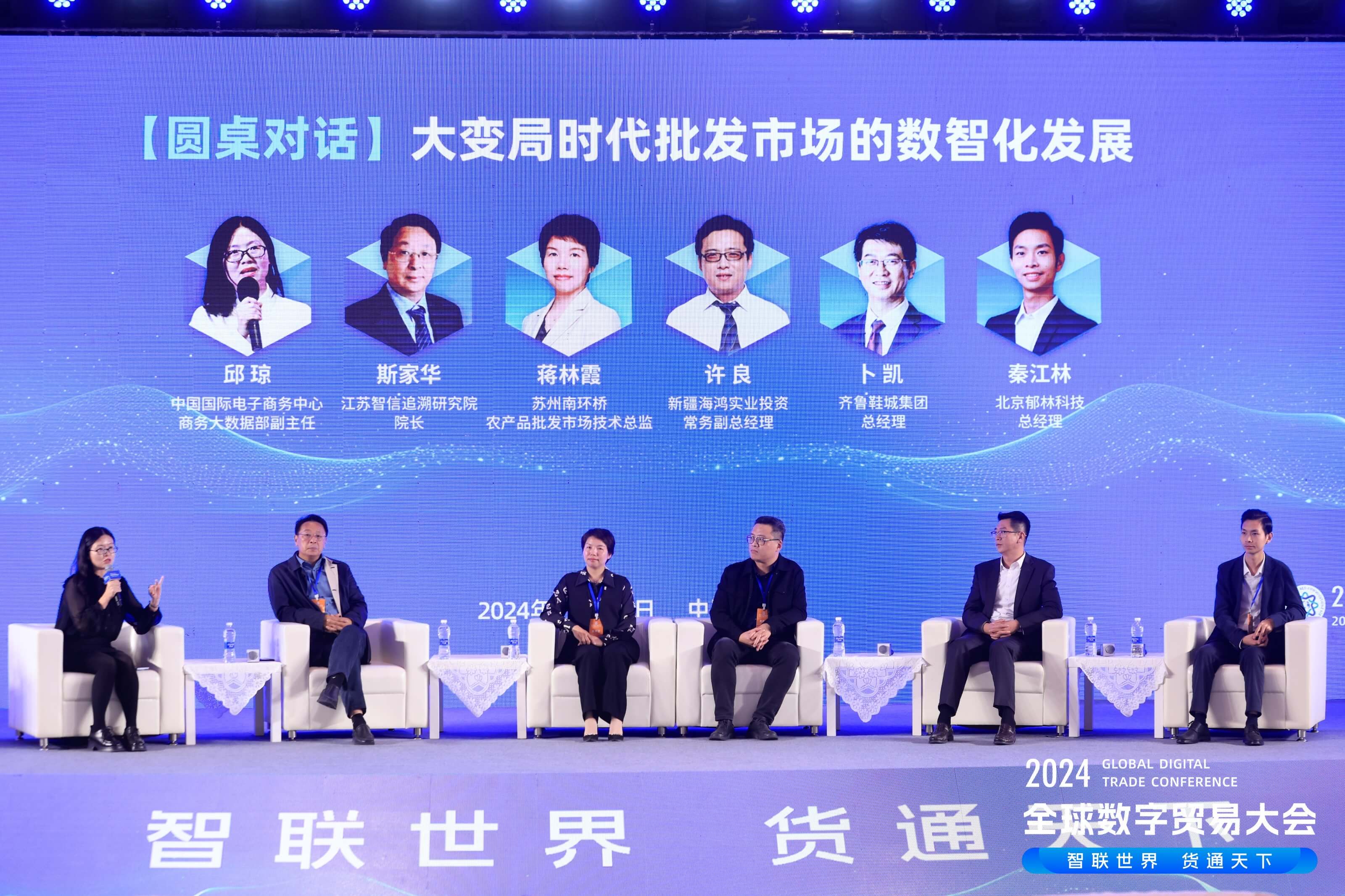 江苏智信追溯研究院院长斯家华、、、、苏州南环桥农产品批发市场技术总监蒋林霞、、、、新疆海鸿实业投资有限公司常务副总经理许良、、齐鲁鞋城集团有限公司总经理卜凯、、北京郁林科技有限公司总经理秦江林等,,,则围绕《大变局时代批发市场的数智化发展》主题进行了讨论。。。。